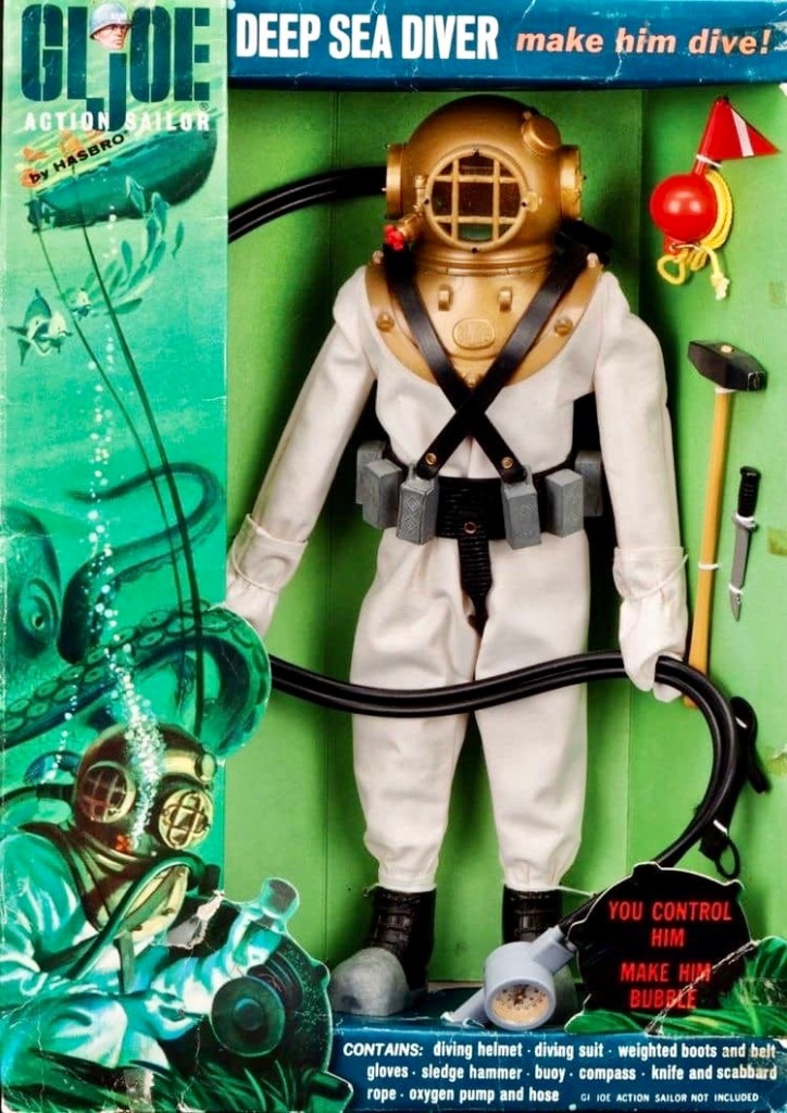 Notes: The Deep Sea Diver figure and accessory set was released in 1965, and ended in 1968. It was incredibly popular at the time, due to its many fun accessories. The air tube would actually send air to the suit and inflate it.
