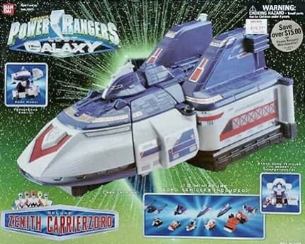 Notes: Like almost every other Ranger line, the Zords are always the most popular items, and Lost Galaxy is no different. Among the harder to find are Deluxe Zenith Carrierzord, Deluxe Super Galactic Megazord, Deluxe Astro Galactic Megazord, and the Deluxe Galaxy Megazord, but the Gold FAO Schwartz version of the Galaxy Megazord is among the harder to find Power Rangers Zords of all time.