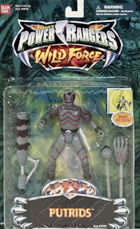 This main series of 5.5″ Wild Force Power Rangers included eight different figures, including all five Rangers, along with the Lunar Wolf Ranger, Putrids and Jindrax.