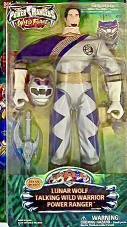The Talking Wild Warrior Power Rangers included four of the Ranger characters, Black Ranger, Blue Ranger, Red Ranger and Lunar Wolf Ranger. Each figure was produced in a 12″ format.