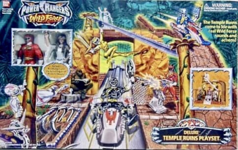 The Power Rangers toy lines were not really known for their playsets, but Bandai released them from time to time. The Power Rangers Deluxe Temple Ruins Playset was released for the Wild Force series in 2002.