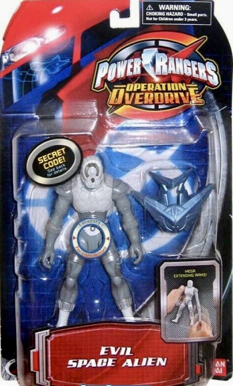 This main series of 5″ Operation Overdrive Power Rangers included eleven different figures, including all the Ranger characters in their Regular and Torque Force versions. Also included were an Evil Space Alien and Chiller.