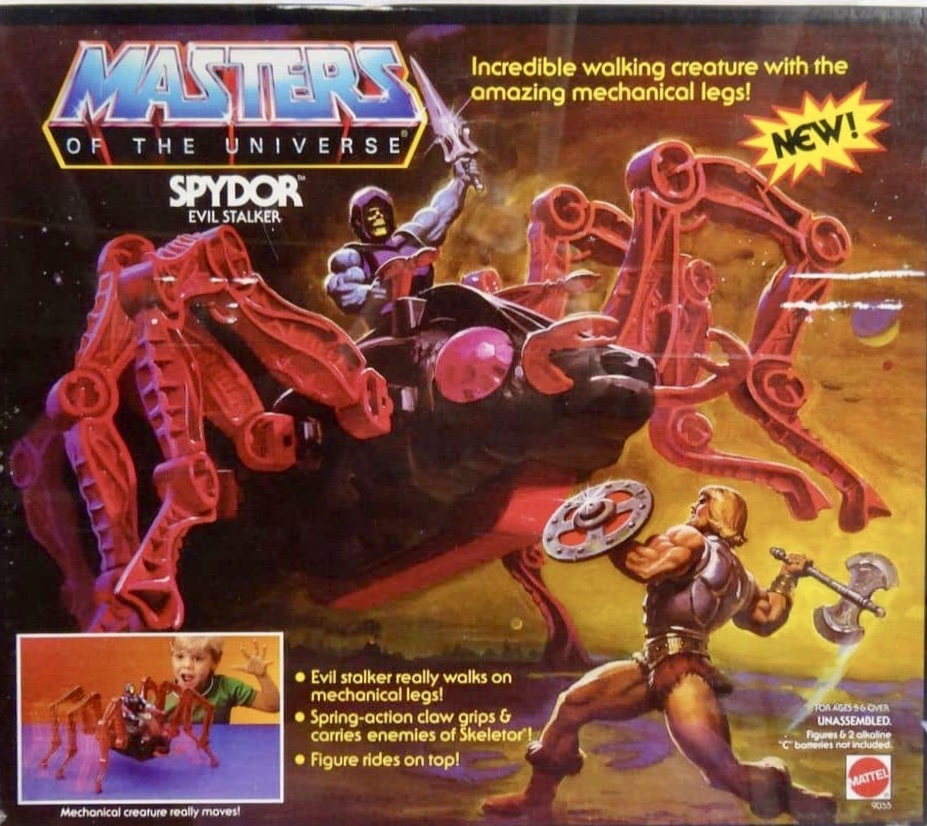 Spydor was exactly what it sounded like, a giant scary looking mechanical spider that shot laser cannons at you. When you turned it on, Spydor would actually walk around the floor with a figure sitting atop of it. This thing moved pretty well and was just menacing looking, and how about that box art!!!
