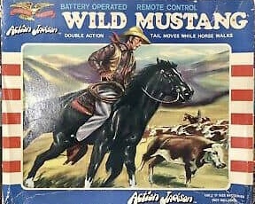 Notes: The Wild Mustang horse figure was a battery powered remote control horse for the Action Jackson figures. It was available in either Brown or Black. It was also re-purposed for the Planet of the Apes and American West toy lines that came afterwards.