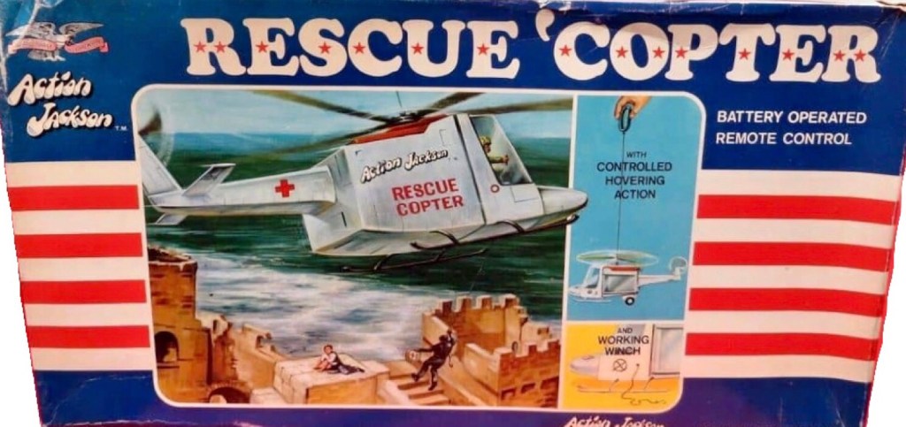 Notes: The Rescue Copter was a remote controlled helicopter that was made to compete with the GI Joe Adventure Team version. It featured a wired remote control that worked fairly well, along with a rescue liter and hand winch to raise it up or down.