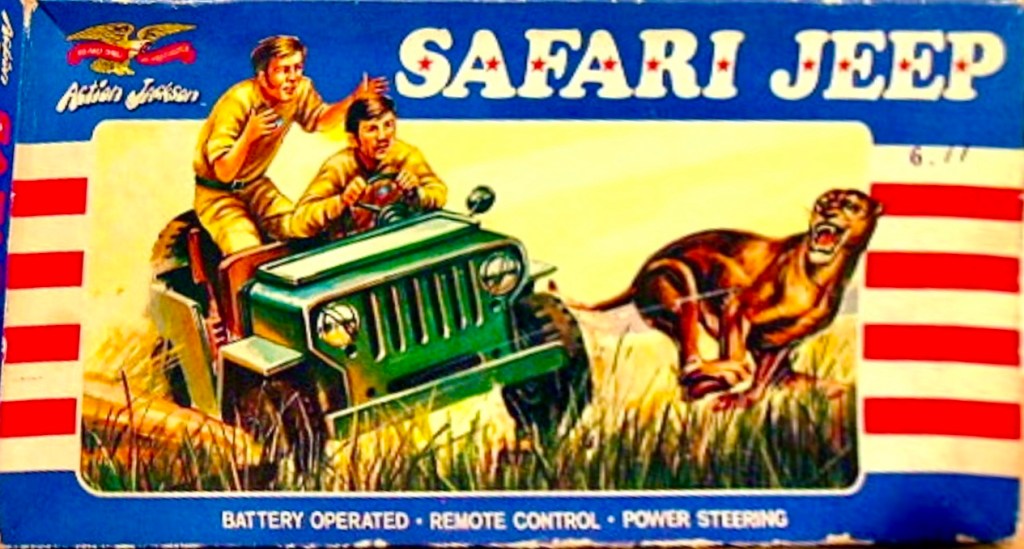 Notes: The Safari Jeep was a remote controlled vehicle that was made to compete with the GI Joe Adventure Team version. It featured a wired remote control that worked fairly well, along with a set of tools and cardboard big cat to hunt on safari.