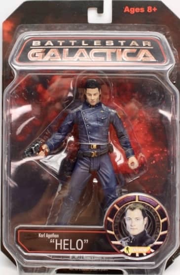 The premier wave of Battlestar Galactica figures from Diamond Select featured a series high seven figures in total, with three regular releases (Hot Dog, Apollo, Six) and four exclusive (Caprica Six, Dress Uniform Helo, Chief Tyrol and Samuel Anders ).