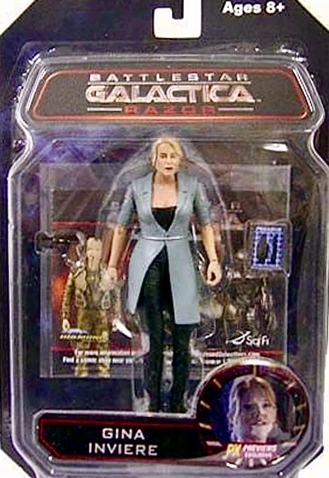 Notes: Gina Inviere is an undercover Cylon operative and a variation of Number Six. The figure was an exclusive to Previews online retailer.