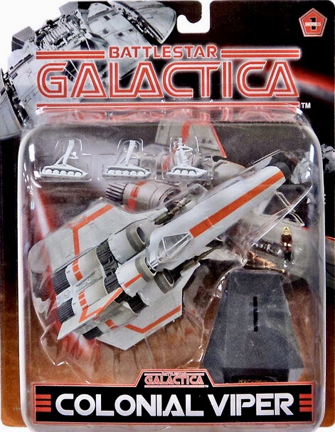 Notes: There are certainly similarities from the Colonial Viper to Star Wars’ X-Wing Fighter, but the Viper definitely holds its own as a unique and recognizable ship from Battlestar Galactica. The White Squadron Viper was one of three different Vipers to be released as part of Joyride’s line during 2005. It came with landing gear, a removable pilot and display stand.