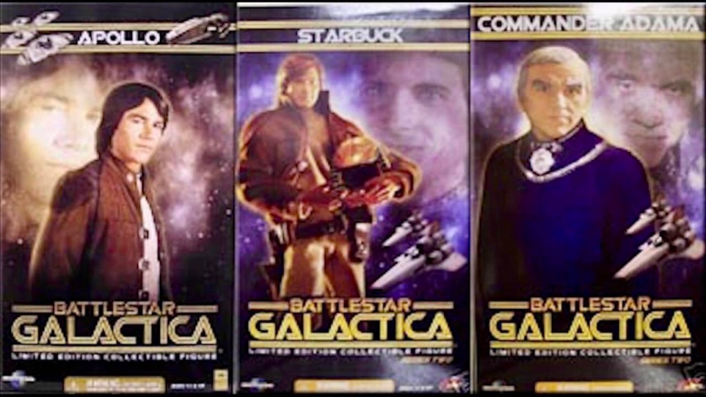 Majestic Studios released five basic 12 inch figures for their classic Battlestar Galactica line, with Apollo, Commander Adama, Starbuck, Cylon Centurion and Cylon Commander. These figures were highly detailed with an amazing display of skilled sculpting.