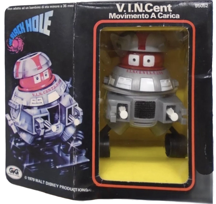 Notes: The Walking V.I.N Cent toy is probably the rarest toy released from the Black Hole line during its run. It was released by GIG Toys and was unfortunately only available in Italy (of course). This version was slightly bigger than the 8 Inch magnetic version, with the big difference of course being the fact that this V.I.N Cent could move around on the floor.