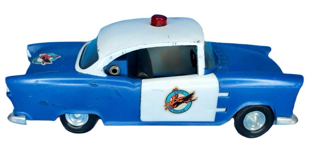 Notes: The Trooper Car acted as a working amplifier that works like a CB. This would allow for simulated Smokie talk while playing with the figures and vehicle itself. The truck set came with two figures, Scowling Jack Jones and Sgt. Brown. In addition, both doors were able to open. This car would go on to be re-used for the Dukes of Hazzard and CHIPS action figure lines.