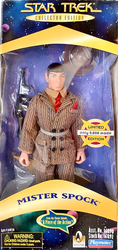 These versions of Captain James T. Kirk and Mr. Spock feature them as they appeared in the classic Original Series episode “A Piece of the Action”, where the Enterprise visits a planet with a 1920’s theme. These figures have some really great sculpts and costumes and were only available at KB toys. They were limited to a 5,000 production run each.
