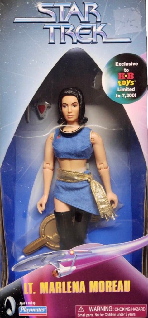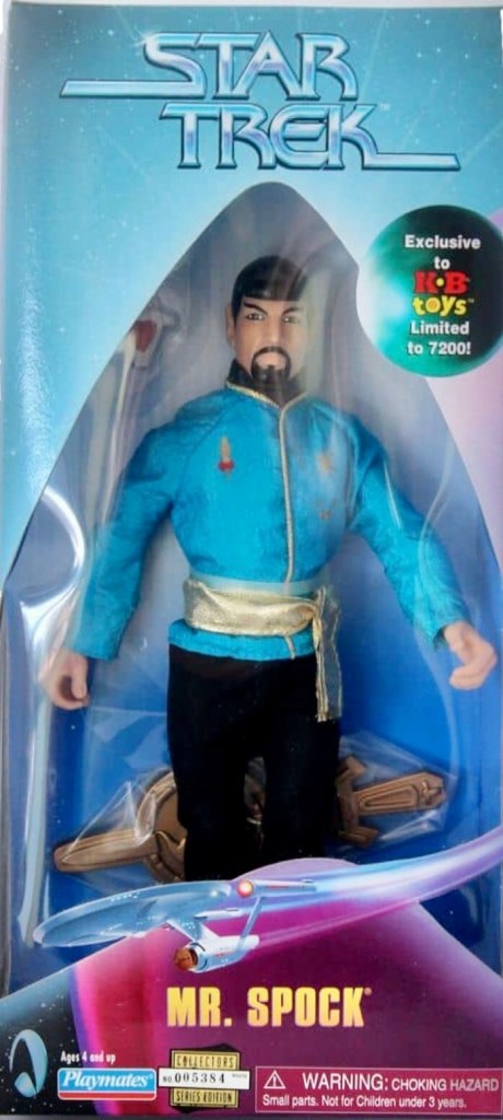 One of my favorite original series episodes of all time was the classic “Mirror, Mirror”, where Captain Kirk and Crew are swapped with evil counterparts from a parallel universe. Kirk, Spock & Uhura are talked about a little later, but these two wonderfully done figures start off my list. They were exclusives to KB Toys in 1999 and I have to say the Lt. Marlena Moreau figure is probably one of the more sexier figure from Playmates in in her Mirror uniform, and of course Mirror Sulu is pretty awesome too!