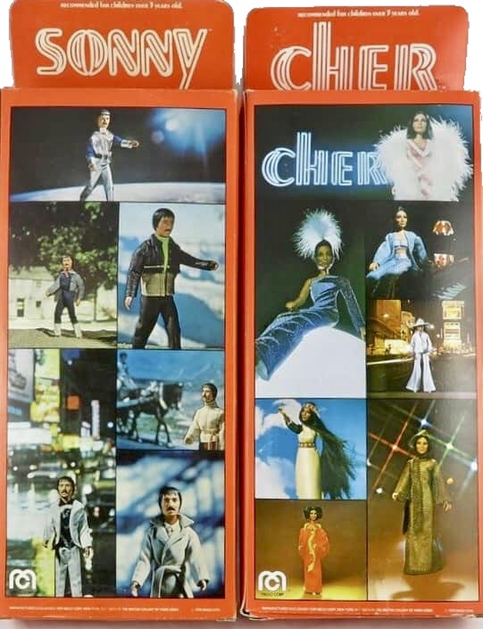 Mego created individual packaging for Sonny and Cher, with both displaying each figure’s various fashion accessories