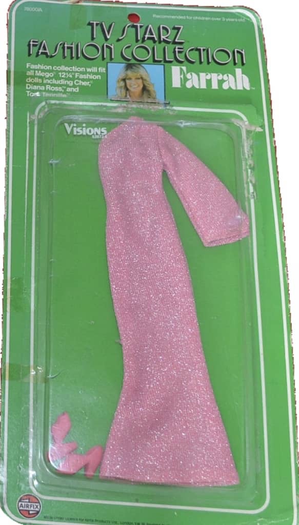 Mego released three different versions of Farrah, with each being the same basic figure but with a different colored jumpsuit. A few accessories were also released including a dressing room, glamour center and several fashion collection outfits.