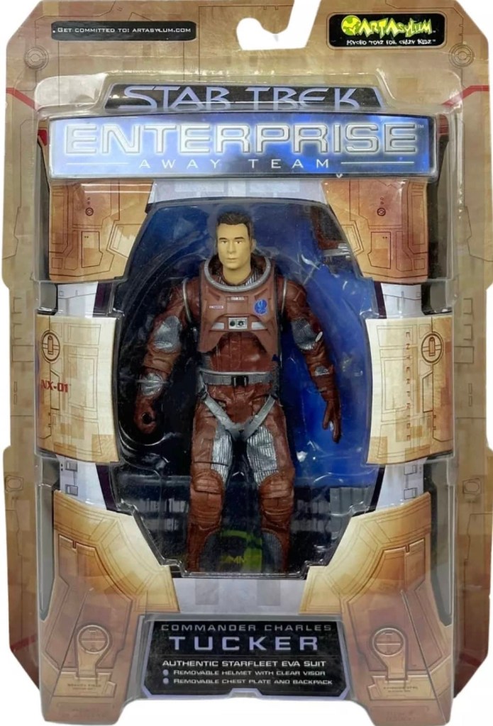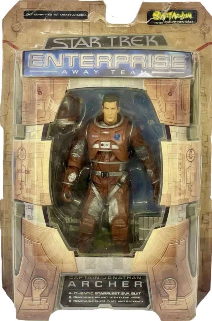 Art Asylum was founded back in 1996 by Digger Mesch and Donna Soldano, and produced toys for popular toy brands of the time before branching out on their own. They acquired the toy license for Star Trek in 2000 and launched their own Star Trek: Enterprise line in 2001. Their Enterprise line included figures themed to the two-part series premiere “Broken Bow”, as well to an “Away Team” theme that featured the characters off the ship. This line was very well done with some fantastic sculpts, but unfortunately short lived.