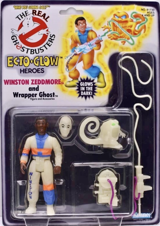 Notes: This is the newest version of Winston Zeddmore, as part of the ECTO-Glow Hero line. This time he glows in the dark, along with his proton pack, face mask, and Wrapper Ghost.