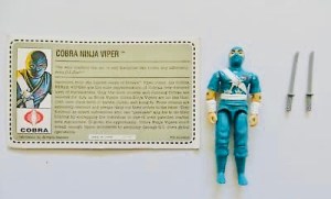 Notes: The Cobra Ninja Viper was only available in 1992 through mail order offers. There are minor color variations to the Ninja Viper’s sword and uniform. The Cobra Ninja Viper was never released in a carded format.