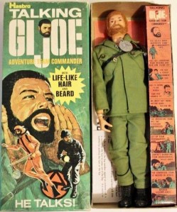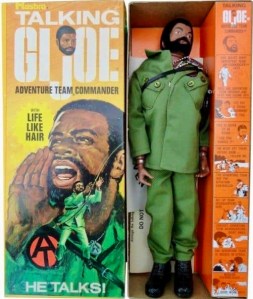 Notes: Hasbro used the Adventurer head sculpt for this figure but added the flocked beard feature. Like other talking figures, Talking Commander spoke 8 different phrases. This African-American version of the Commander was made available in 1973.