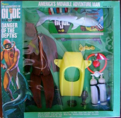 Accessories: 3-Piece Scuba Suit, Swim Fins, Face Mask, Oxygen Tanks, Spear Gun, Knife, Scuba Sled, Motor, Shark, Marker Buoy, Comic Book
