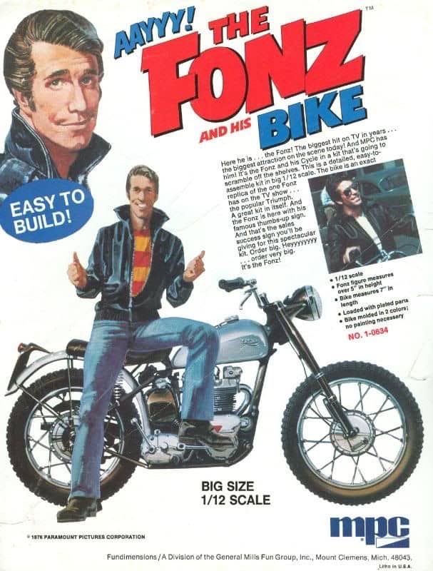 Notes: If you make a Fonzie action figure, you absolutely have to also make his signature motorcycle. This cool looking cycle comes with a unique Twist-Out Action Feature that allows it to make sharp turns by using the stabilizer wheels that kind of look like training wheels on each side of the bike.