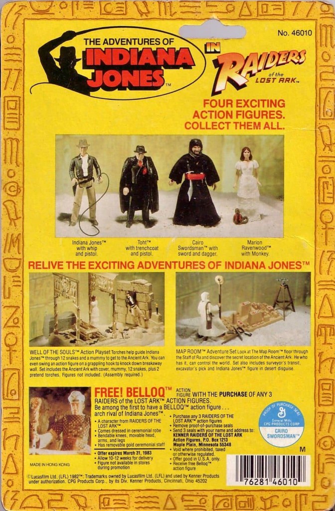 For their initial release of Indiana Jones action figures, Kenner released only four characters. We got the two main heroes of Raiders of the Lost Ark, with Indiana Jones and Marion Ravenwood, to go along with two bad guys for them to battle against, Cairo Swordsman and Toht.