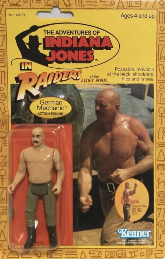 Notes: The German Mechanic figure was of course based on the character from the classic fight scene with Indy after he had escaped from the Well of the Souls with Marion. The mechanic comes with the same “Quick Draw Action” arm as Indy did, which allowed to thrust his arm forward when pulled back.