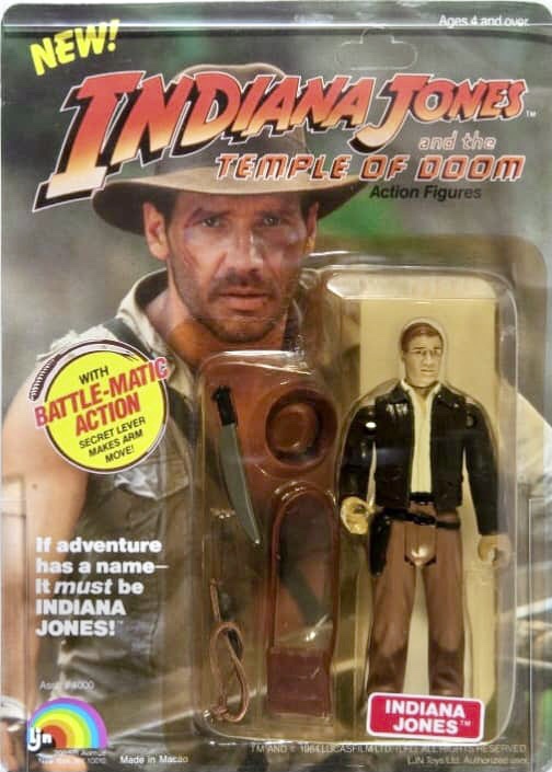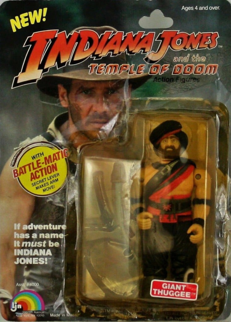 If adventure has a name…..it must be Indiana Jones! That was the tagline from the newest Indy film, Indiana Jones and the Temple of Doom. The movie was released in 1984, and went on to become a smash success by grossing over $333 million worldwide. It was the highest grossing film in the world that year. After Raiders of the Lost Ark was released in 1981, Paramount Pictures knew a sequel was a no-brainer. Harrison Ford, Steven Spielberg, and George Lucas all returned for the sequel, but the same could not be said for Kenner Toys. After slower than expected sales of their action figure line from 1982-1983, Kenner decided to opt out of their contract in 1984. The fact that Temple of Doom was being advertised as a more “adult themed” movie, probably influenced that decision as well. With the Indiana Jones license available for the taking, a small toy company called LJN swooped in and grabbed it. LJN had been around since 1970, with their big claim to fame being figures based on E.T, Michael Jackson and Dungeons & Dragons. It definitely seemed like an odd choice at the time, but the truth is, there just wasn’t a ton of interest in the Temple of Doom action figure line with the big toy companies.