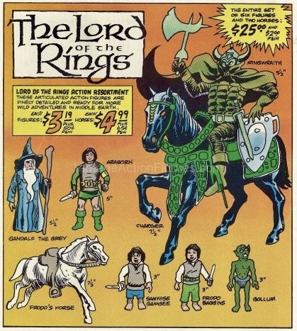 Over its long history, we have seen LOTS of different Lord of the Rings products from a few different companies, some better than others. Just like every other toy line, the values of certain items can greatly fluctuate over time. This is based on several factors, including the item’s time period, scarcity, overall condition, and of course, consumer demand. The good news for Lord of the Rings collectors is there is always a demand for items from this franchise, as Knickerbocker, Toy Vault and Toy Biz created some truly iconic pieces. Most individual figures and accessories from the Toy Biz line can be easily found on the secondary market, with some Gift Packs and Large Sized Figure being harder to find than others to find. The same can be said for Toy Vault’s Middle Earth toy line, as they can be easily found nowadays and at affordable prices. The Knickerbocker line from 1979 can prove a bit challenging and pricey to collect, but they always looks great in any Lord of the Rings collection. Values for Lord of the Rings items have seen a slight uptick recently with the big budgeted Rings of Power series on Amazon and the upcoming “The War of the Rohirrim” movie in December of 2024. Pair that with talk of new live action movies as well, and the ceiling for Lord of the Rings collectibles looks bright. The Tolkien market remains strong due to an ever present nostalgic desire from kids who have read the books or grew up watching the live action films, not to mention an absolutely rabid and loyal fan base.