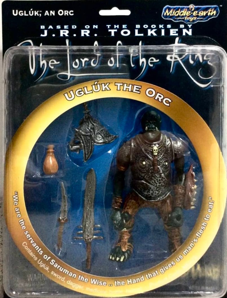 Toy Vault’s second wave of figures once again included only two characters, with several variants made of each. The two characters were Frodo the Hobbit and Ugluk the Orc. It should be noted that only four figures of each character were offered in this wave, in contrast to the five offered in Wave One. Both of these initial figures were released with lovely card art, painted by famed fantasy artist Daniel Horne. Both figures would be re-released as part of the mass market wave later in the year with the updated bister pack card.