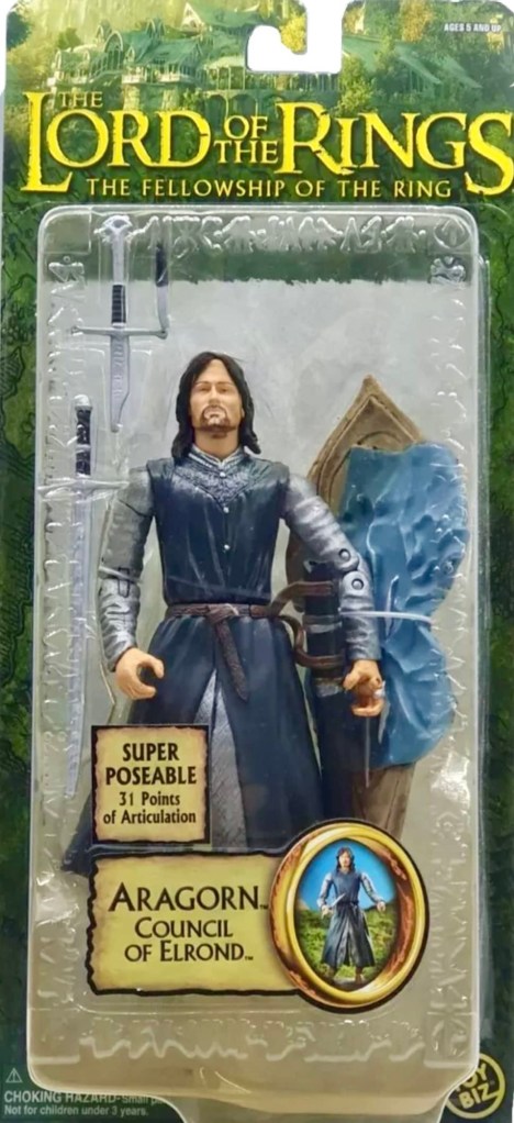 Toy Biz released four fantastic looking figures for the premier wave of the Epic Trilogy Series. This first wave included Council of Elrond Aragorn, Fiery Ringwraith, Galadriel Entranced and Super Poseable Frodo with Journal. This initial wave was themed to the first movie in Peter Jackson’s epic trilogy (no puns intended) with the Fellowship of the Ring.
