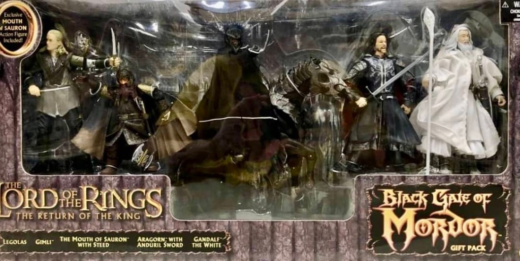 Return of the King was released in 2003, and expectations were very high for the conclusion of this epic trilogy, as well as the toy line. The movie went on to become a smash hit, for the fans AND critics, winning numerous awards including 11 Oscars. Toy Biz released several waves of new and re-released figures, along with large sized figures, multipacks, gift packs and various accessories. This was also a bitter sweet time for fans, as the end of the trilogy meant the end of new Lord of the Rings movie toys as well.