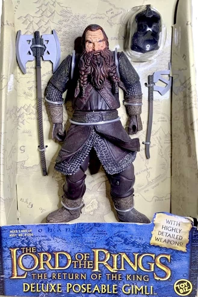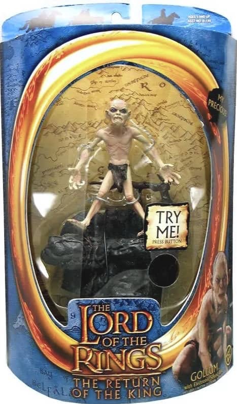 The 12 Inch figure series continued with Return of the King, but only three characters were released in their usual boxed format, Aragorn, Gimli and Legolas. A fourth figure, Gollum, was released with an electronic talking feature in an open window box.