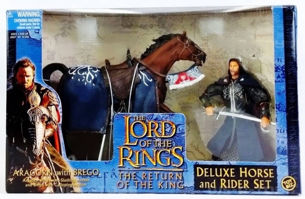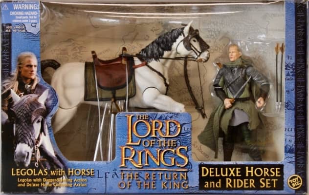 Toy Biz continued their Deluxe House and Rider Sets for Return of the King in 2003 with six releases. Of those six sets, only Legolas w/ Horse and Sharku w/ Warg were new. The other sets were re-releases from previous waves, but with the new blue colored packaging.
