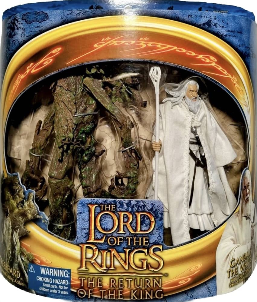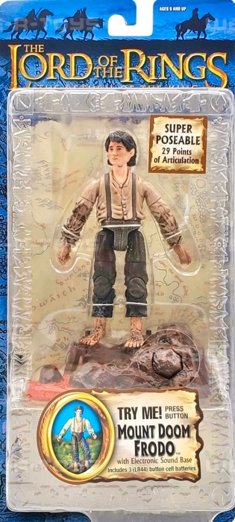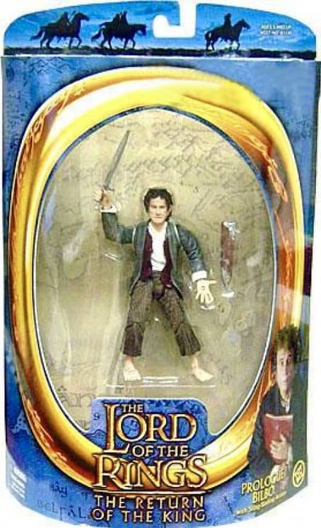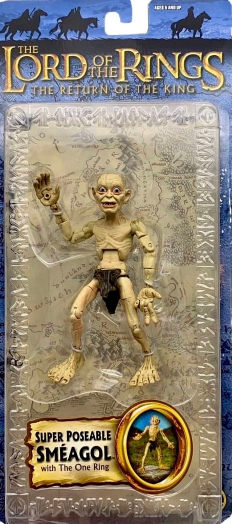 Toy Biz released five figures for the 3rd wave of “Half-Moon” Packaged figures from Return of the King in 2003. Featured were Eowyn with Sword Slashing Action, Gollum with Electronic Base, Smeagol with Electronic Base, Prologue Bilbo and Treebeard.