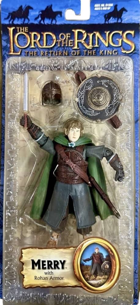 Toy Biz continued the new small card packaged figures from Return of the King with a new 2nd wave of four more figures. Unlike the previous wave, these figures were brand new and had never been seen before. Featured were Faramir in Gondorian Armor, King of the Dead, Merry in Rohan Armor and the Morgul Lord Witch-King.