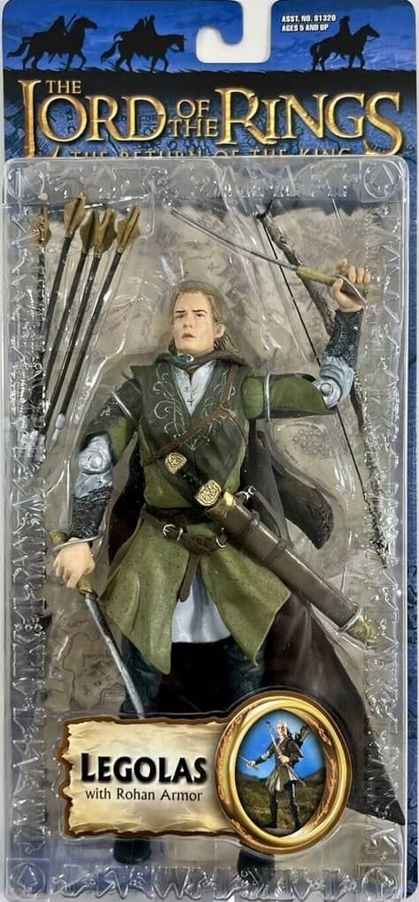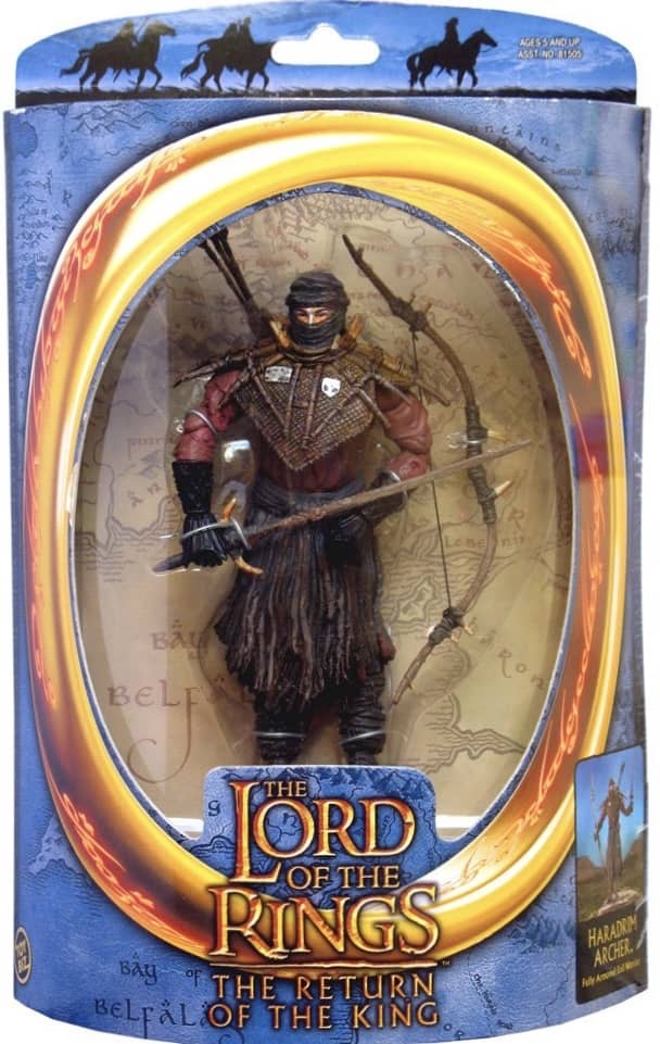 Toy Biz released five figures for the 4th and final wave of “Half-Moon” Packaged figures from Return of the King in 2003. Featured were Aragorn, Aragorn in King of Gondor Armor, Haradrim Archer, Legolas in Rohan and Pippin in Armor.