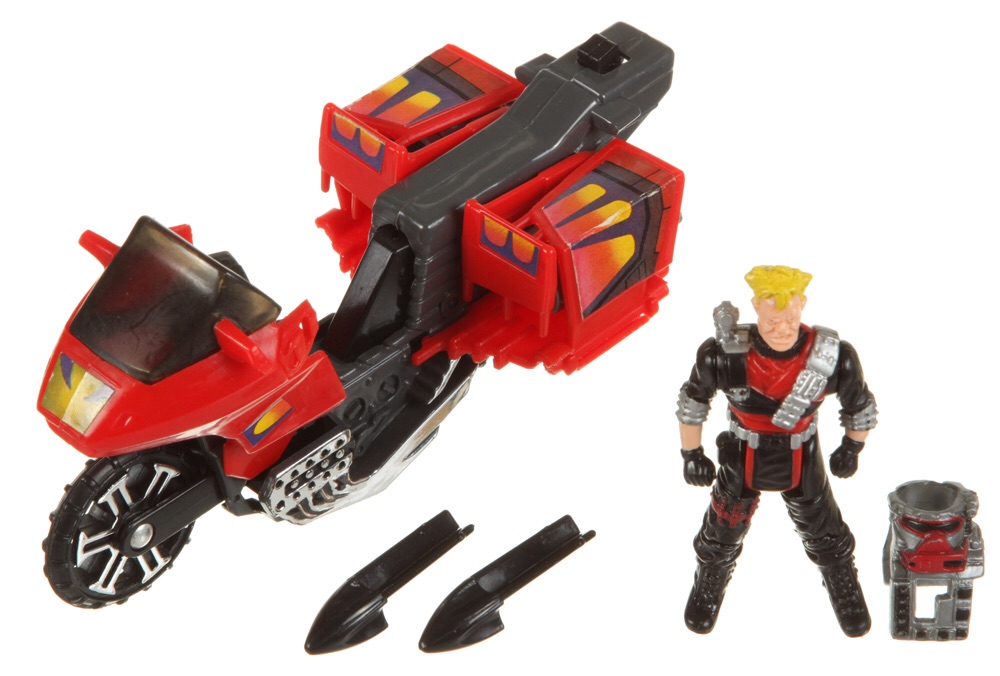 Notes: Vampire is a Touring Cycle that can change into a Turbo Cycle. It’s operated by Floyd Malloy, who goes by the codename, Birdman. Malloy came with his Buckshot mask, which pretends to launch ball bearings. Vampire included a Drop-Down Cowling Shield, Boomerang Atom Blaster, Dual Raked Wings with Dreadwing Detonators, Flip-Up Stabilizers with Laser Tracers, Boom Thrusters and Retro Rockets.