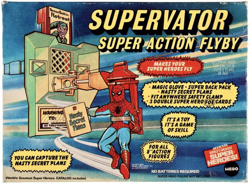Mego began their World’s Greatest Super Hero line in 1972 with DC characters, but Marvel Comics joined in on the fun the following year in 1973. Throughout the decade, Mego released some of the most popular and iconic heroes of the Marvel world, including Spiderman, Hulk, Captain America, Thor, Iron Man, Green Goblin, Lizard, Conan The Barbarian, Falcon and the Fantastic Four (Mr. Fantastic, Invisible Girl, Thing, Human Torch). Yes, it would have been amazing to get action figures of other characters such as Doctor Doom, Dr. Strange, Daredevil and the X-Men, but these Marvel figures that Mego did produce were the hottest game in town during the decade of the 1970’s and remain iconic and highly coveted by Mego and Marvel collectors nowadays. In addition to the 8″ figures, Mego also gave us 12″ versions of Captain America, Hulk and Spider-Man, as well as the Spider-Car, Captain Americar and the strange but lovable Supervator playset.