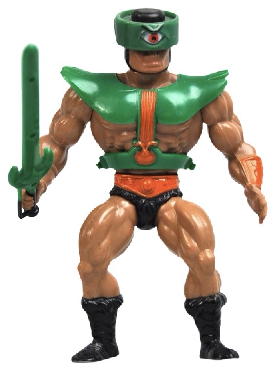 Notes: Tri-Klops featured a rotating helmet with a different eye on each setting (calm blue eye, angry red eye, and really angry looking all red eye). Like the other figures in this line, Tri-Klops had the special feature that allowed you to twist his waist and watch him throw a Power Punch. Tri-Klops comes with his removable armor, long sword, mini-comic and a Warrior’s Ring with a secret compartment.
