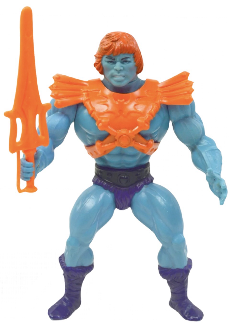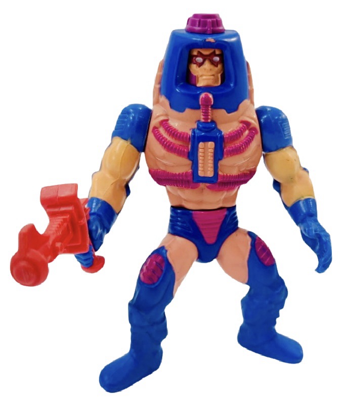 Notes: Man-E-Faces is a complex and heroic warrior known for his ability to change his face—and his persona—at will. A master of disguise and transformation, he can switch between three distinct identities: a human warrior, a monstrous brute, and a cold, calculating robot. Like the other figures in this line, Man-E-Faces had a special feature that allowed you to twist his waist and watch him throw a Power Punch. Man-E-Faces came with a dark blue laser blaster.