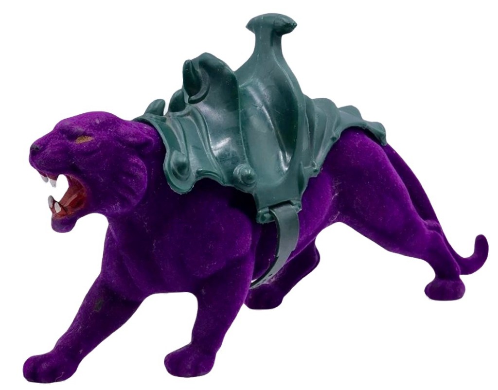 Notes: Since He-Man had Battle Cat, Skeletor needed a super cool ride as well, so Mattel introduced Panthor to the Masters of the Universe line in 1983. This was a great looking creature with a nice sculpt, but what made it even better was the imitation flocked hair it was covered with. This gave Panthor a unique feature that Battle Cat didn’t have. Also included was a saddle for Skeletor to sit in. The one down side to Panthor is that he had no moveable parts, but that could be forgiven.