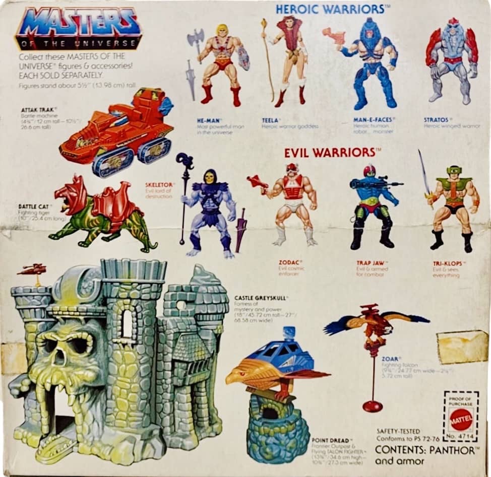 Accessories: Panthor (Removable Armor, Saddle) / Skeletor (Havok Staff, Power Sword, Harness, Belt)