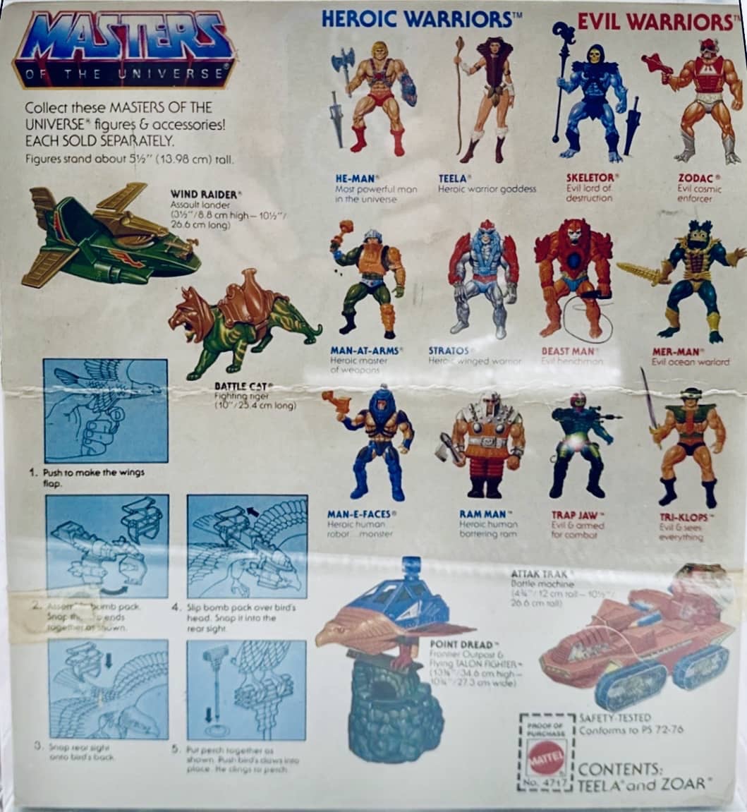 Notes: This gift set was a combo pack and included Teela and Zoar together, along with their accessories. This was a more limited release than the individual releases at the time and is a highly sought after prize for Masters of the Universe collectors and fans.
