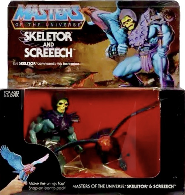 Notes: This gift set was a combo pack and included Skeletor and Screeech together, along with their accessories. This was a more limited release than the individual releases at the time and is a highly sought after prize for Masters of the Universe collectors and fans.