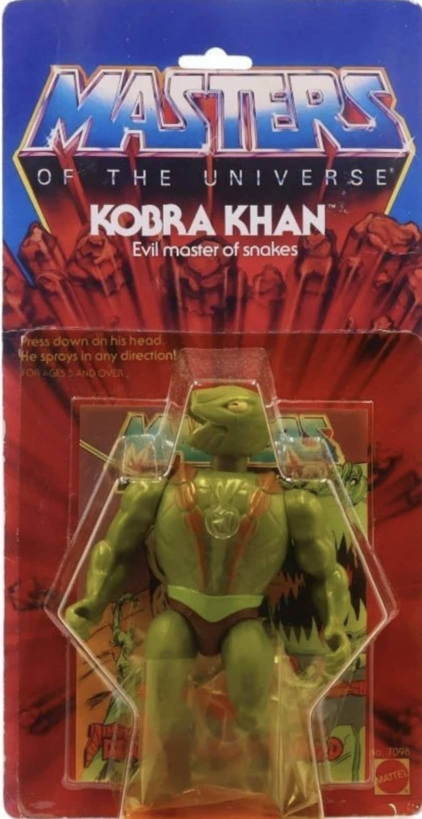 Notes: Kobra Khan has ties to the Snake Men—a group of ancient, serpent-like warriors. As the “Evil Master of Snakes,” Kobra Khan uses his reptilian abilities to strike fear into the hearts of the heroes. His signature weapon is a deadly spray of hypnotic mist or poisonous gas, which he can eject from his mouth. Kobra Khan also carries a red laser pistol.