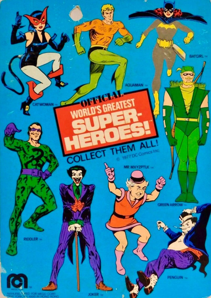 Mego began their World’s Greatest Super Hero line in 1972 with DC characters, before being joined by Marvel Comics the following year in 1973. Throughout the decade, Mego released some of the most popular and iconic heroes of the DC Comics world, including Superman, Batman, Robin, Aquaman, Shazam, Joker, Penguin, Riddler, Mr. Mxyzptlk, Green Arrow, Isis, Tarzan, Catwoman, Wonder Woman, Supergirl, Batgirl and the Teen Titans (Aqualad, Kid Flash, Speedy, Wonder Girl). The World’s Greatest Super-Heroes line was the flagship brand for Mego at the time, and one of the most successful selling action figure lines of the decade.