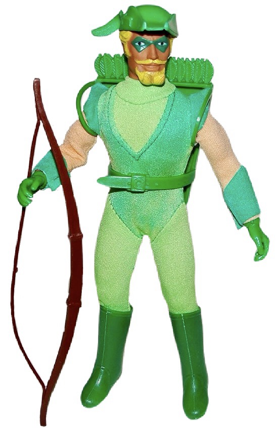 Notes: Green Arrow made his Mego debut in 1974 with this open boxed version. Mego later switched their packaging format to a carded blister pack from 1976 until 1978, when he was eventually removed from the WSGH lineup. There were no variations from the Boxed to Carded versions. Green Arrow included lots of little accessories, which are often lost with many loose versions on the secondary market. Arrow came his cloth outfit, boots, hat, quiver and of course, his signature bow. It should also be noted that his mask is painted on and not removable.