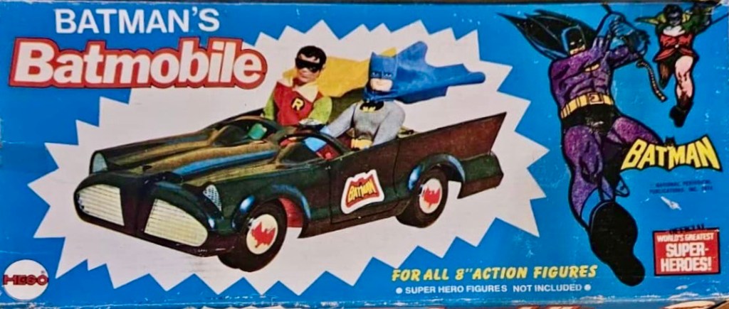 Notes: One of four different “Bat Vehicles” released by Mego to be used with the Batman & Robin figures. The Batcycle was Batman’s motorcycle, with a side-car for Robin. There were two different color variations to the Batcycle with the standard one being blue (as the package shows) and the more rare version being black. This item isn’t as rare as other Mego vehicles but can still be tough to find.